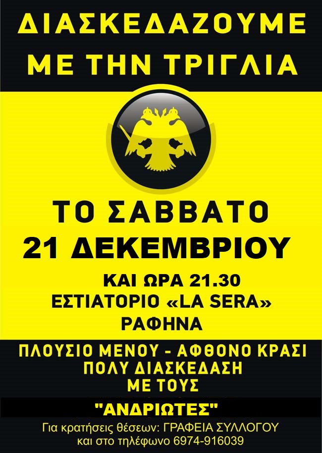 Η Τριγλία Ραφήνας σας προσκαλεί το Σάββατο 21 Δεκεμβρίου στον ετήσιο χορό του συλλόγου.