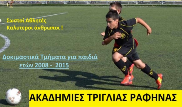 Λόγω της εκ νέου ανακατασκευής του Δημοτικού Γηπέδου και μέχρι την ολοκλήρωση και παράδοση του στις ομάδες, το πρόγραμμα προπονήσεων των ακαδημιών της Τριγλίας, διαμορφώνεται ως εξής: