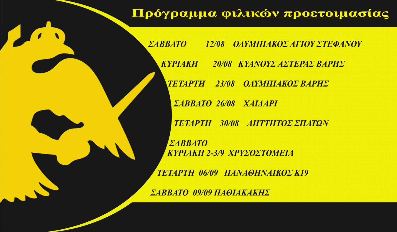 Πρόγραμμα φιλικών αγώνων προετοιμασίας.