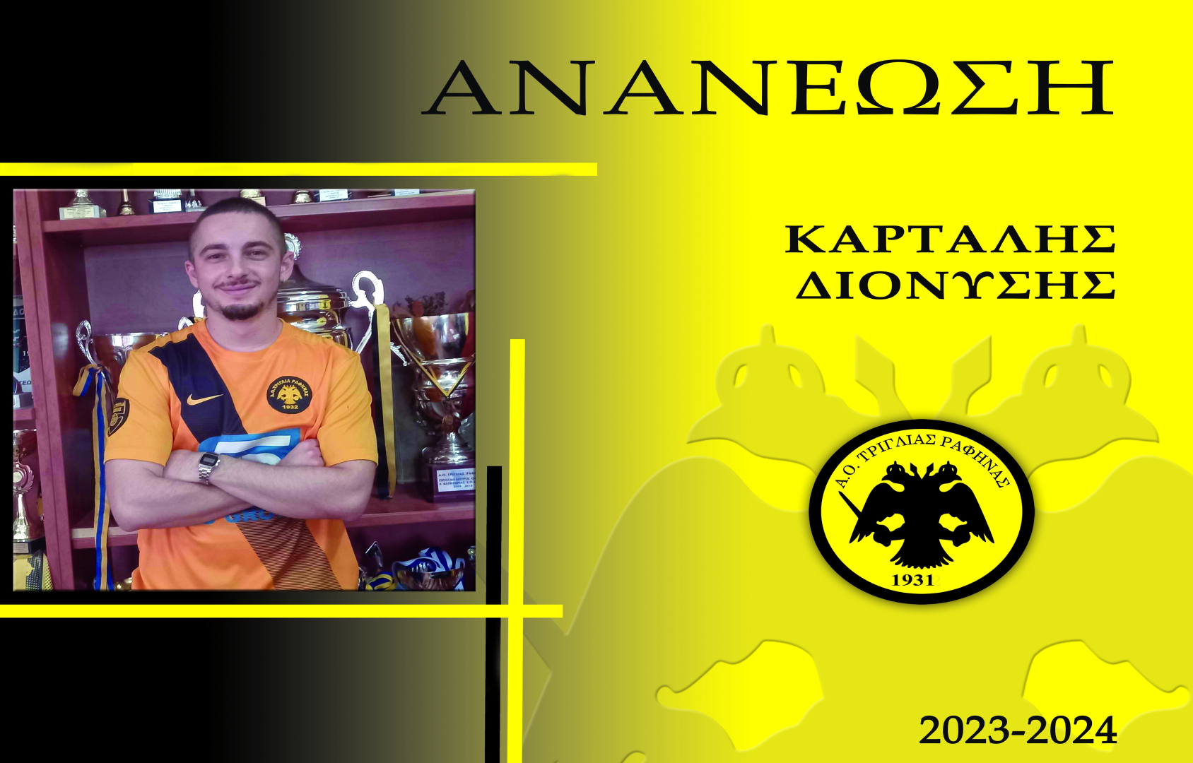 Το Δ.Σ. του Α.Ο. Τριγλίας Ραφήνας ανακοινώνει την επέκταση της συνεργασίας και για την επόμενη σεζόν με τον Διονύση Καρτάλη.